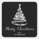 Silver and Black Ribbon Tree Merry Christmas Square Sticker