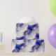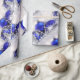 Glamourous Christmas wrapping paper with beautiful blue glittery Christmas ornaments, white sparkling lights, shiny silver pearls and tinsel.