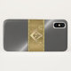Add a monogram on this simple and sleek looking phone case with silver background and gold band. The square and compass is done in gold.