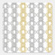 An elegant pattern of silver and gold geometric shapes, linked in a series of linear, lace streamers.