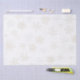 Silver and gold snowflakes tissue paper for wrapping Christmas gifts. White paper has a light background pattern of big snowflakes / ice crystals.