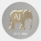 Silver and Gold Foil Elephant Monogram Wedding Classic Round Sticker - with initials of Bride and Groom and elegant, unique silhouette of elephant - symbol of love, fertility and good luck.