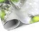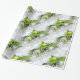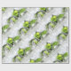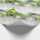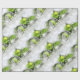 Glamourous Christmas wrapping paper with beautiful green glittery Christmas ornaments, white sparkling lights, shiny silver pearls and tinsel.