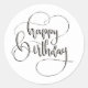 A Elegant Silver Glitter Script Happy Birthday Round Sticker For Mailings Or Party Favour Bags