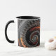 Stunning silver and orange Mandelbrot fractal with spirals and a sphere reflecting the image