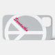 A silver coloured case featuring a large white peace sign and custom name in bright pink.