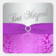 This 1.5" square silver and purple damask Bat Mitzvah sticker/envelope seal matches the invitation and other items shown below.