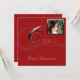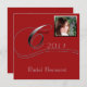 This graduation announcement is a modern take on a classic look. The background is red and has a silver frame for a photo that you can include of your graduate. To the left side it says "Class of" with your graduate's name. Your custom text goes on the back. This ensemble has Invitations, Thank You cards, Return Address labels, Postage, Wine Labels (for sparkling juice), Binder, and a Poster perfect for getting those autographs!