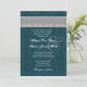 Silver and Dark Teal Blue Damask Ribbon Monogram Wedding 3. This invitation with its silver damask ribbon and coordinating rich background with a subtle textured look damask is an elegant choice for your wedding. All text is customisable. You can experiment with different paper types by clicking on the "Invitation Options" tab on the upper right hand corner. I recommend the ice hued metallic paper which gives your birthday invitation a festive shimmer and shine. Lovely!