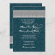 Silver and Teal Damask Ribbon Monogram Wedding 3 Invitation