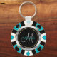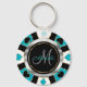 Silver and Turquoise Poker Chip Design - Monogram Key Ring