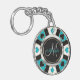 Silver and Turquoise Poker Chip Design - Monogram Key Ring