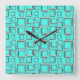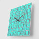 Wall square clock with retro pattern made of silver squares on turquoise background