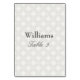 Featuring a Damask Print Pattern, this silver and white tablecard features a template for your name and table number. Customise the font using a variety of colours and text styles. Place your order today!