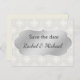 Inform customers of your event with this silver and white wedding save the date. With information written in templates purchase yours today!