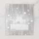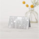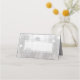 Winter wedding themed folded place card done in a shiny silver tone with a white text area surrounded by white snowflakes. Personalise by hand, each card for your wedding reception.