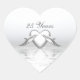 Heart-shaped sticker with my image of two silver-coloured dolphins and a heart on shining waters.