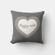 This pillow features a white heart outlined in silver overlaid by the template text "Happy 25th" in a cursive silver font. The opposite side of the pillow features a repeating silver heart pattern. The silver heart pillow is a great 25th wedding anniversary gift.