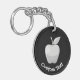 Silver apple with leaf icon. Custom background colour. Custom text on both sides.
