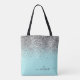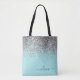 Silver Aqua Teal Blue Girly Glitter Monogram Tote Bag
