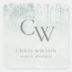 Silver Aqua Teal Brushed Metallic Monogram Initial Square Sticker
