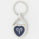 Silver Aries Zodiac Sign Blue Carbon Fibre Print Key Ring