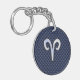 Silver Aries Zodiac Sign Navy Carbon Fibre Style Key Ring