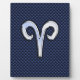 Silver Aries Zodiac Sign Navy Carbon Fibre Style Plaque