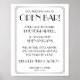 Black and white Art Deco Great Gatsby wedding Open Bar sign print poster with silver frame and customisable text - you can add your text, bride's and groom's name and wedding date. Dimensions of the sign print (poster) are 8 inches by 10 inches (vertical).