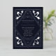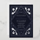 Set the stage for an elegant event with this all-in-one invitation. This tarot-inspired wedding invitation features an Art Nouveau frame in a shimmering silver against a black background—perfect for a love story full of magic. The back features the wedding details. Please note that the silver on the back of the invitation is NOT real foil and is printed in flat colours.