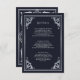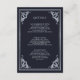 Set the stage for an elegant event with this wedding details card. This tarot-inspired design features an Art Nouveau frame in silver against a navy blue background—perfect for a love story full of magic. Please note that the silver on these cards is NOT real foil and is printed in flat colours.