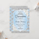 Baby blue and silver Quinceanera invitation. Features stripes, script font, white roses, tiara and confetti. Classy soft blue design with faux glitter silver foil. Perfect for an elegant glam celebration.
