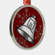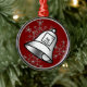 Great idea for science teachers! This Christmas bell has the periodic table symbol for silver, Ag. Silver snowflakes on a dark red background.