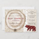Winter Forest Baby Shower invitations with silver birch, bear cub and buffalo plaid pattern