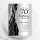 Black and silver agate 70th birthday party invitation. Elegant modern design featuring rock stone marble geode background, faux glitter silver and typography script font. Trendy invite card perfect for a stylish women's bday celebration. Printed Zazzle invitations or instant download digital printable template.