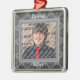 A silver frame highlighted by a background with a subtle damask pattern is the centerpiece of this elegant keepsake photo ornament. Upload your own photo and customise the year and name. This elegant design makes a great gift for any occasion!