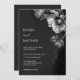 This elegant dark moody floral wedding invitation features silver gray flowers on a black background. Dark aesthetic wedding invitation with your photo in black and white on the backside.
