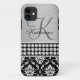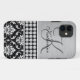 This monogrammed silver brushed steel look, black and white damask iPhone5 Case-Mate Case has a photo of this design embedded into the hard plastic cover. The design is made up of a black and white damask pattern, a print of three rows of white diamonds in a stripe and an area where you can add your name and monogram initial in gorgeous script fonts. This iPhone 5 case cover is the perfect way to accessorise your iPhone 5. Be stylish and girly all at the same time. Design by Elke Clarke©2012. Graphics licensed for use. Contact designer for other background colours.