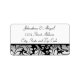 Elegant chic vintage flourish swirl damask pattern in a silvery grey on black background. Customise your personal contact information or leave black. Trendy labels for wedding invitations, bridal shower invites or birthday party invitations.