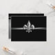 These elegant Silver Black Fleur de Lis event invitations feature an imitation silver metal Fleur de Lis symbol on a black background. Personalise with your corporate, black tie, or other special event information on the back, which features a silver Fleur de Lis on black border and a gradient background that mimics a diamond spotlight.