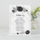 elegant silver grey and black flowers seating chart table number card