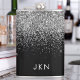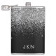 Silver Black Glitter Custom Monogram Name Hip Flask
