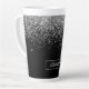 Silver Black Glitter Girly Monogram Name Latte Mug