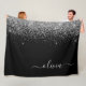 Silver Black Glitter Script Monogram Girly Name Fleece Blanket