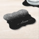 Silver Black Glitter Script Monogram Girly Name Paper Coaster