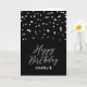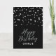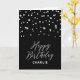 Silver & Black Happy Birthday Custom Name Greeting Card