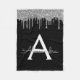 Silver Black Luxury Glitter Glam Monogram Name Fleece Blanket