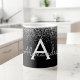 Luxury Silver and Black Sparkle Glitter Monogram Name and Initial Coffee Mug. The mug makes the perfect gift for someone who loves stylish chic girly luxury!