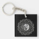 A detailed mandala featuring a yin-yang symbol in the center surrounded by floral patterns. The grayscale palette adds depth and contrast.