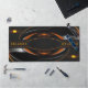 The gaming background for the desk mat features a striking combination of silver, black, and orange geometric lines. The lines are arranged in a captivating pattern that adds a touch of sophistication and elegance to your gaming setup.